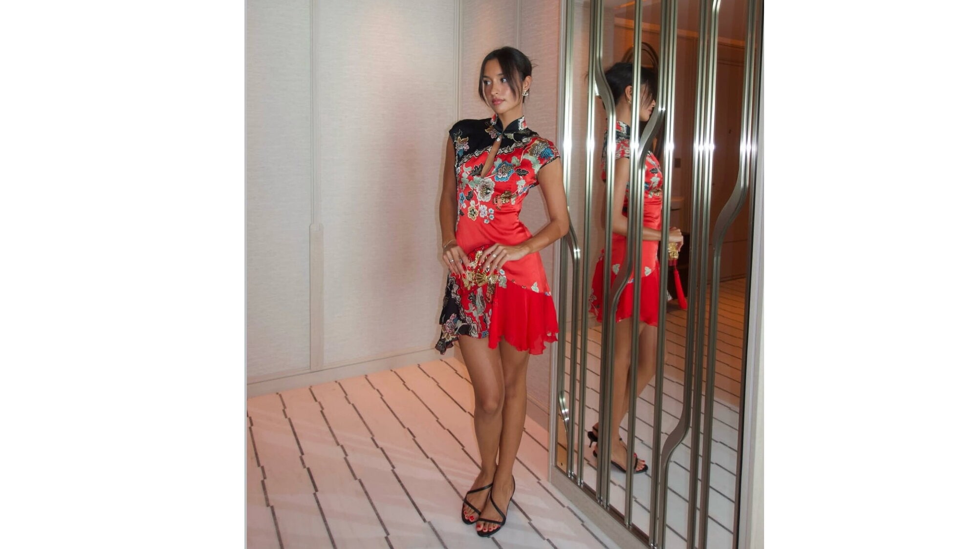 • Vestito: Roberto Cavalli Spring 2003, seta floreale con colletto alto in stile Cheongsam – 4.000 €